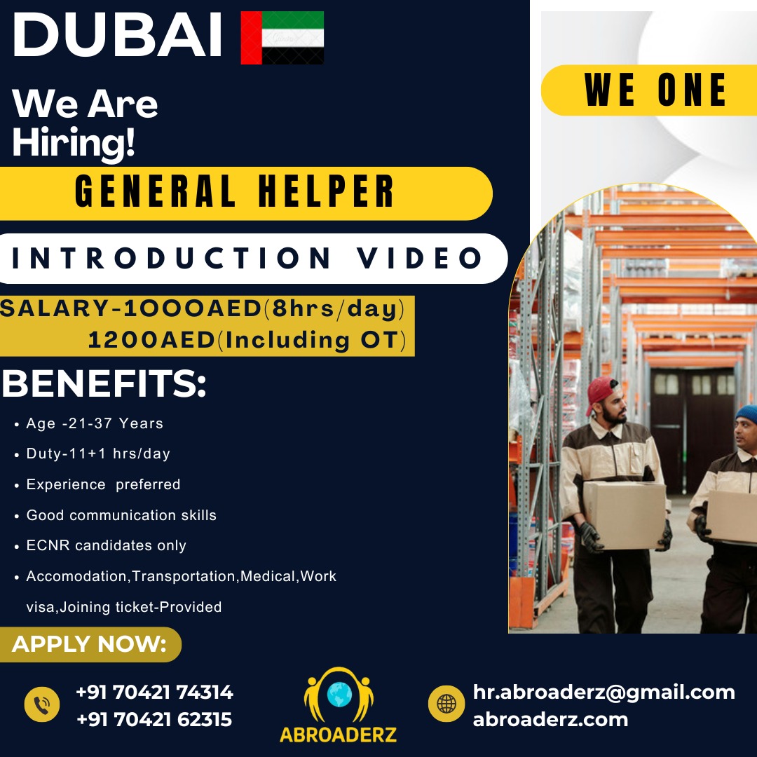 • Accommodation, Transportation, Medical, Work Visa, Joining Ticket – Provided