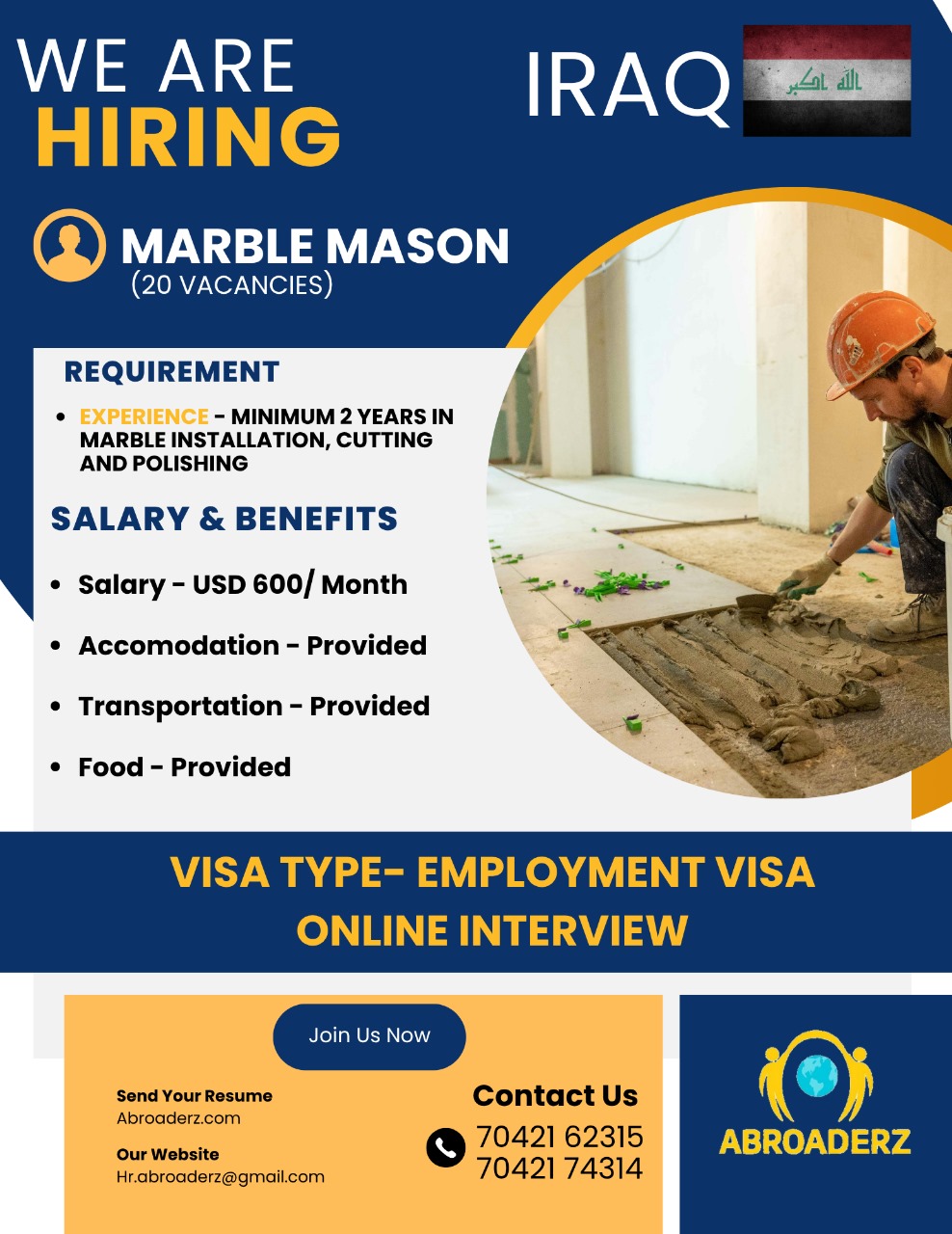 EXPERIENCE – MINIMUM 2 YEARS IN MARBLE INSTALLATION, CUTTING AND POLISHING