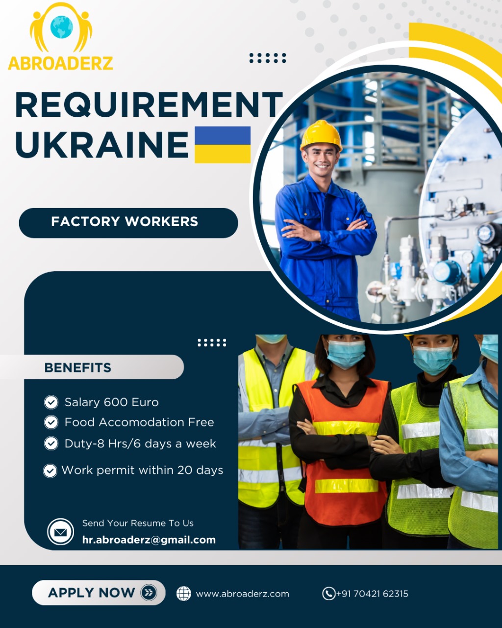 Hiring for UKRAINE ( Factory Workers ) Oil & Gas September 17, 2025 Full time Application deadline closed. Job Description Full time Anywhere Posted 4 weeks ago Salary 600 Euro Food Accomodation Free Duty-8 Hrs/6 days a week Work permit within 20 days Share this post Facebook Twitter Pinterest Photos Related Jobs CLIENT INTERVIEW FOR EMDAD, SAUDI ARABIA / BIHAR 04-05 JULY / TRICHY- 09 – 10 JULY 2024 Featured Oil & Gas Full time Urgent