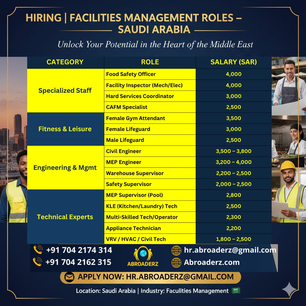 HIRING | FACILITIES MANAGEMENT ROLES – SAUDI ARABIA